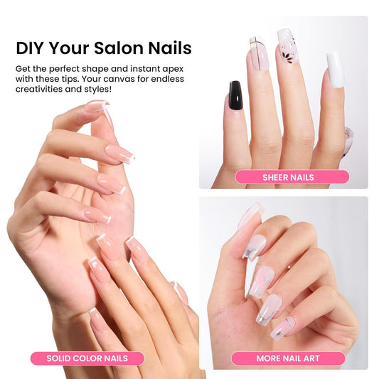 Beetles Tipex Gel Nail Kit Short Coffin Instant Apex Nail Tips, 224 Pcs 16 Sizes Pre-Building Pre-Etched False Nail Tips with Tipex Uv Nail Glue,Mini Nail Lamp-Thick Acrylic Nail Set