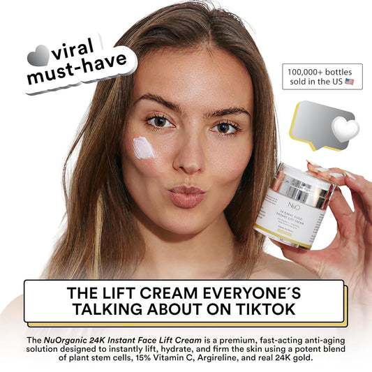 Nuorganic 24K Instant Face Lift Cream - Advanced Anti-Aging Moisturizer with Plant Stem Cells for Youthful Glow - Cruelty-Free Wrinkle Cream for All Skin - Vegan Beauty Skincare, 50Ml 3-Month Supply